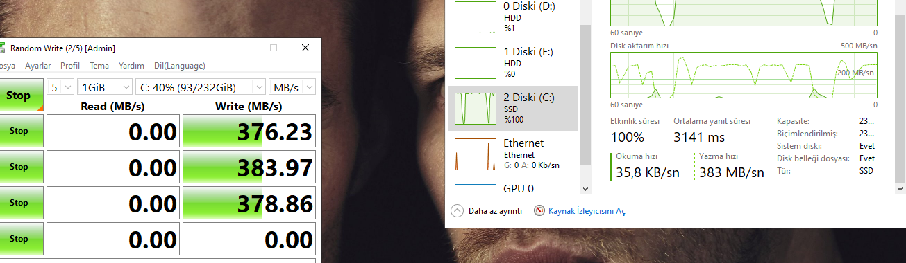 Sizce bu hızın sebebi nedir? Bilgisayarı yeniden başlatıp yaptım testi ve aşağıda hiçbir program açık değildi.