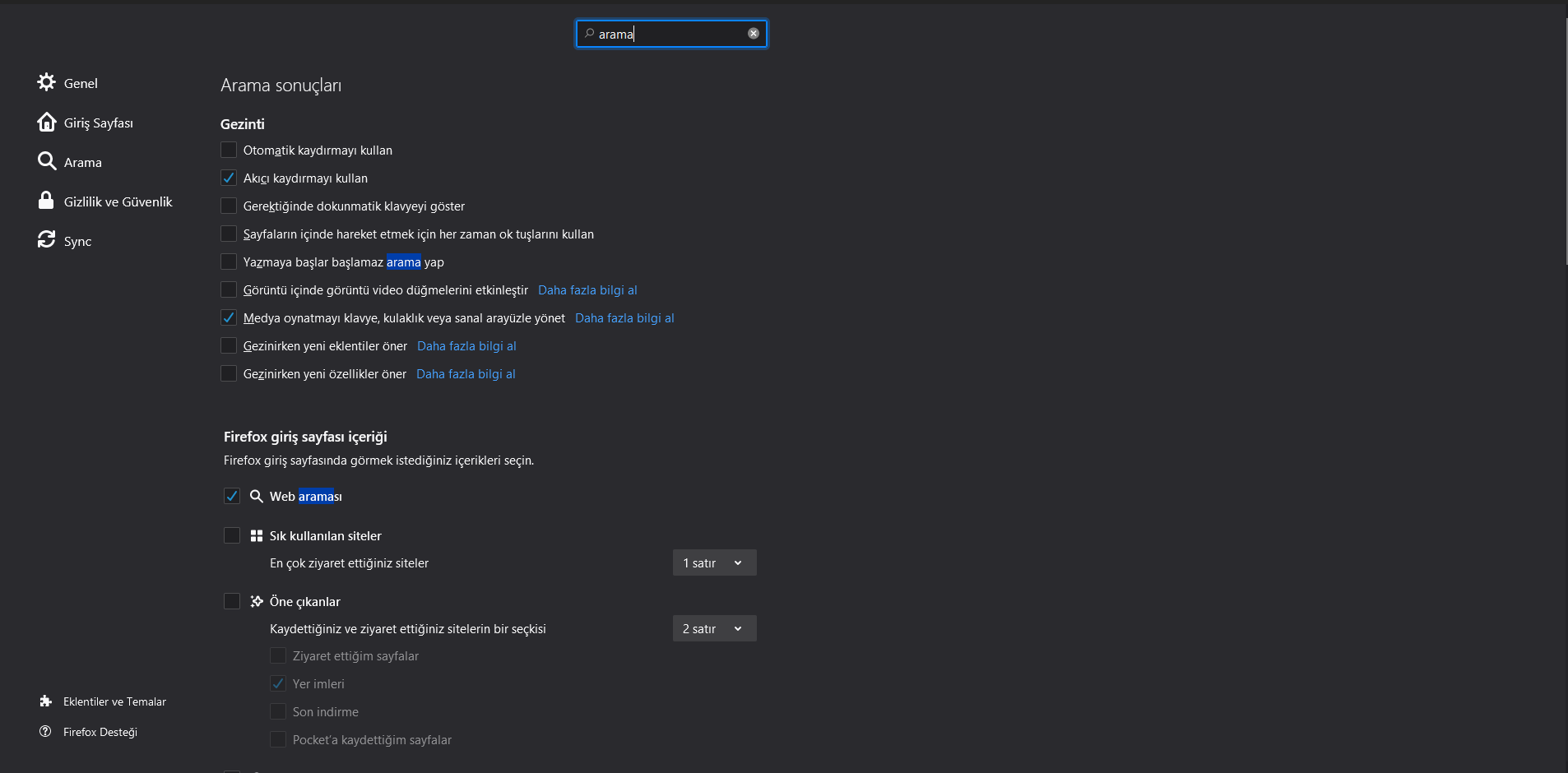 about:config sayfasındaki accessibility.typeaheadfind değerini false yaptığınızda da kapanıyor. Herhangi bir sebepten ayarlar sekmesinde bulamıyorsanız bu yöntemi kullanabilirsiniz.benim bi konuda yarduma ihtiyacım var tm tam ekran yapma sorununu çözdüm ama tam ekran yaparken ekran böyle siyah oluyo 1-2 sn liğine onu nasıl düzeltebilirimSorununuz çözüldü mü, daha fazla yardım gerekiyor mu? Galiba çözülmüş.