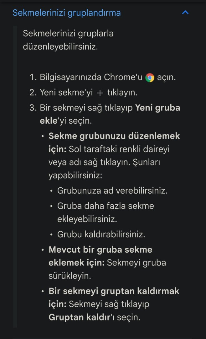 Gruplandırma derken bu ksıımda sekmeler toplu olarak gözüküyor.