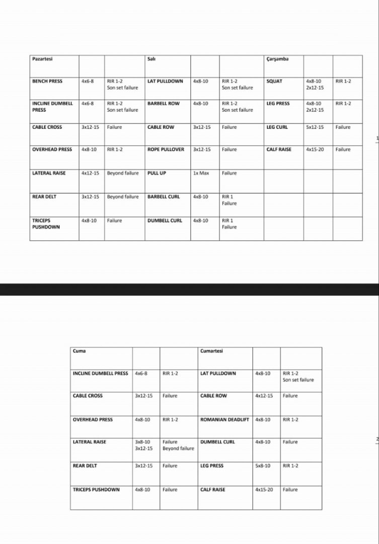 Selam arkadaşlar, haftada 5 gün gidecek bir antrenman hazırlamam gerek. 3 aydır gıdıyorum 2 ay Full body yaptım 2.aydan sonra bölge bölge calısmaya başladım, programım iyi hoş da yetersız kaldıgını dusunuyorum. Kullandıgım herhangı bır proteın tozu vb. yok 5 gunluk bır program onerırsenız sevınırım.
