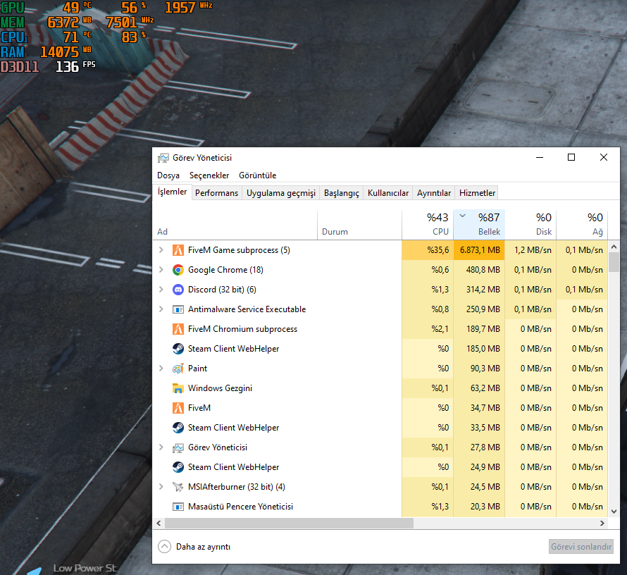 FiveM %90 bellek kullanımı normal mi?