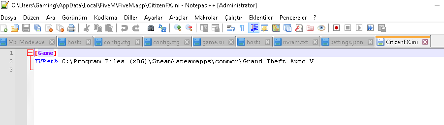 GTA V klasör yolun nedir, FiveM.exe'yi onun içine kopyalayıp deneyebilir misin?