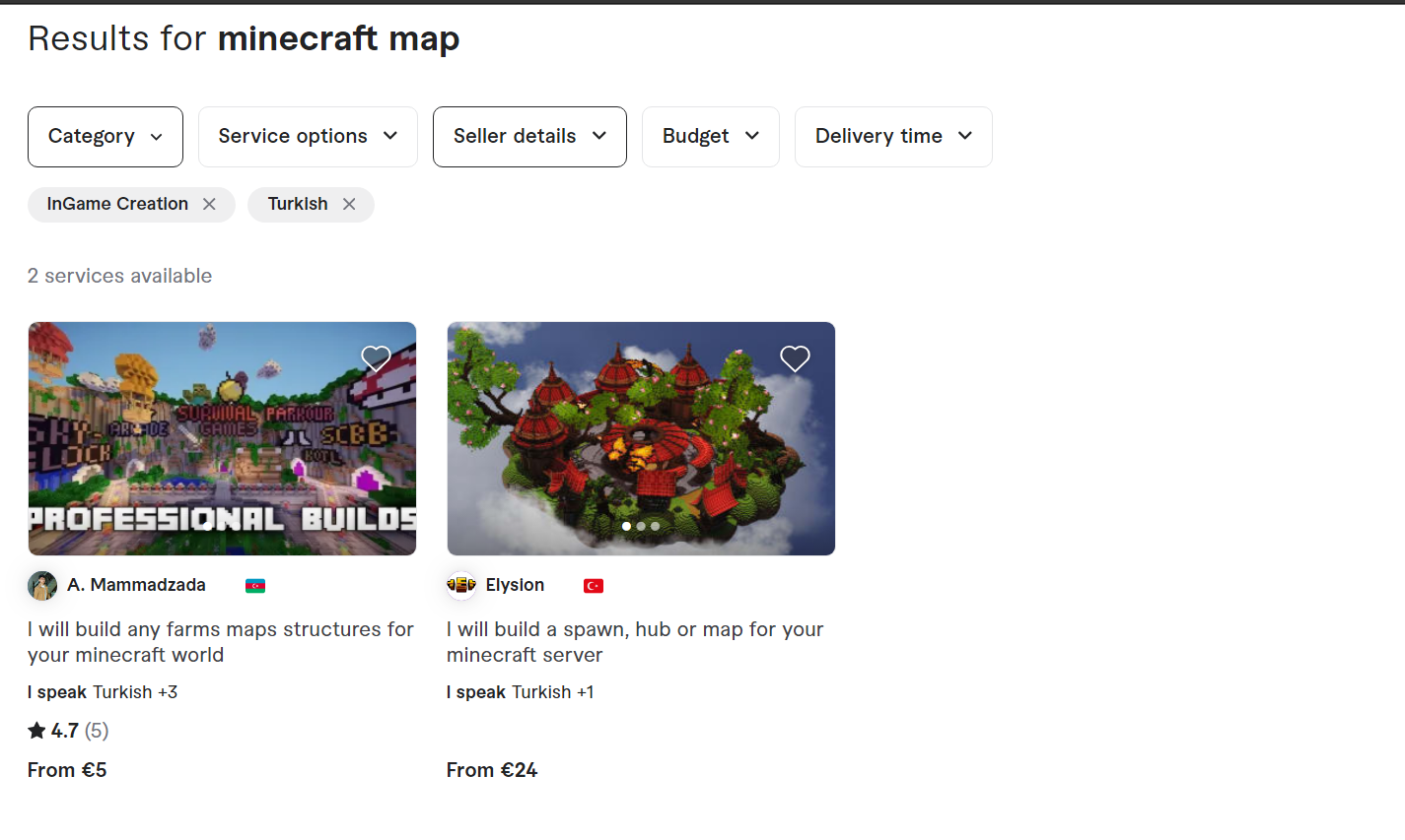 Bazen abone olduğum Minecraft YouTube kanalları Fiverr'den 30 ya da 50 dolara harita yaptırdıklarını söylüyorlar. Yapılan mapler de rezalet ötesi. 30 dolar değil 1 dolar hak etmeyen mapler. Ben çok güzel function mapler yaptığımı düşünüyorum. Sizce Fiverr'e kayıt olsam bana da map yaptırırlar mı?