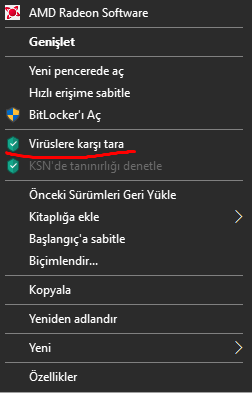 Sonra flash bellekleri sırasıyla takın ve sağ tıklayıp kırmızı ile çizdiğim tuşa basın. ( bilgisayarda Kaspersky yüklü varsayıyorum. Değilse yükleyin )