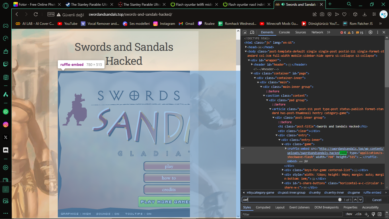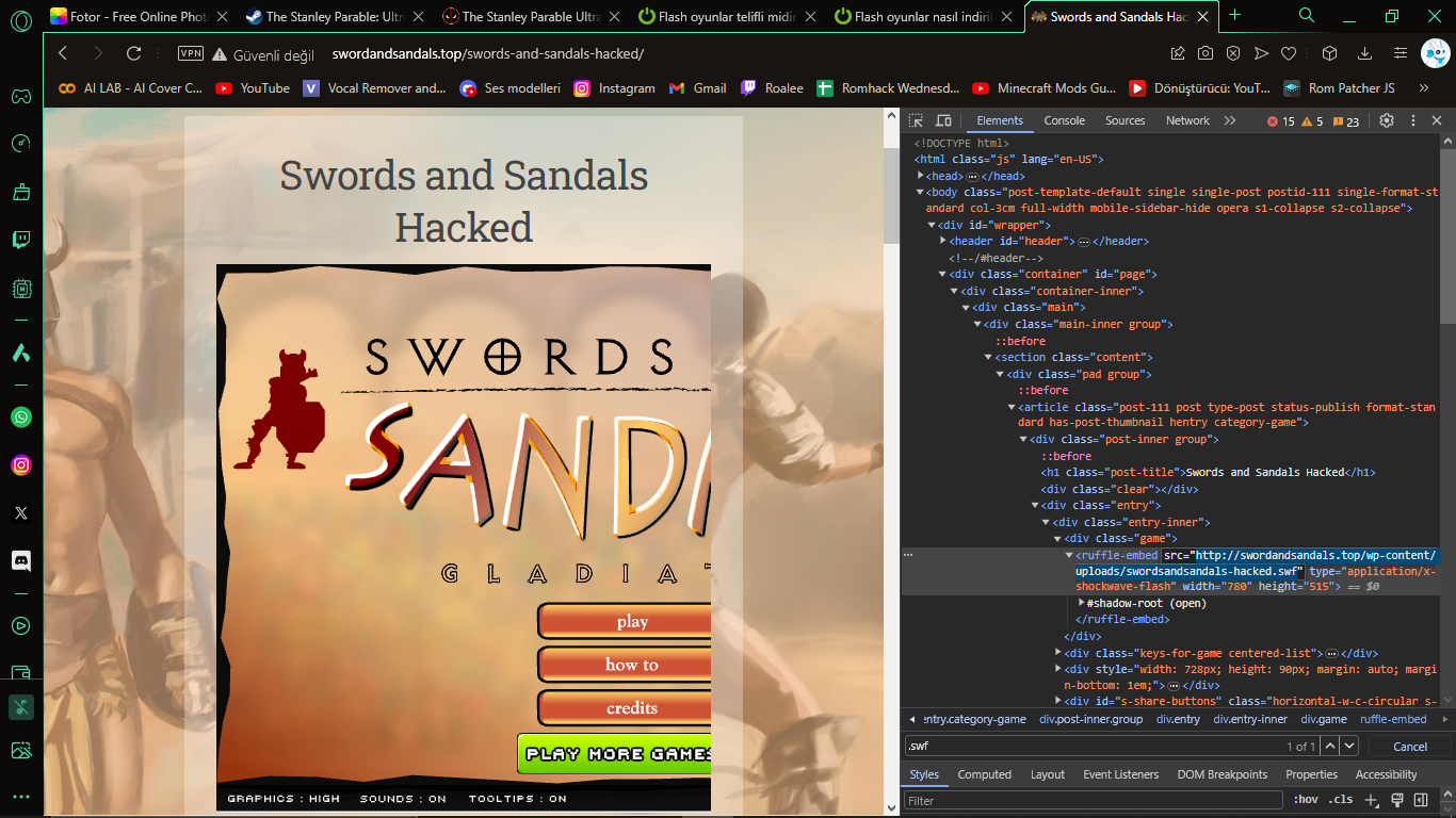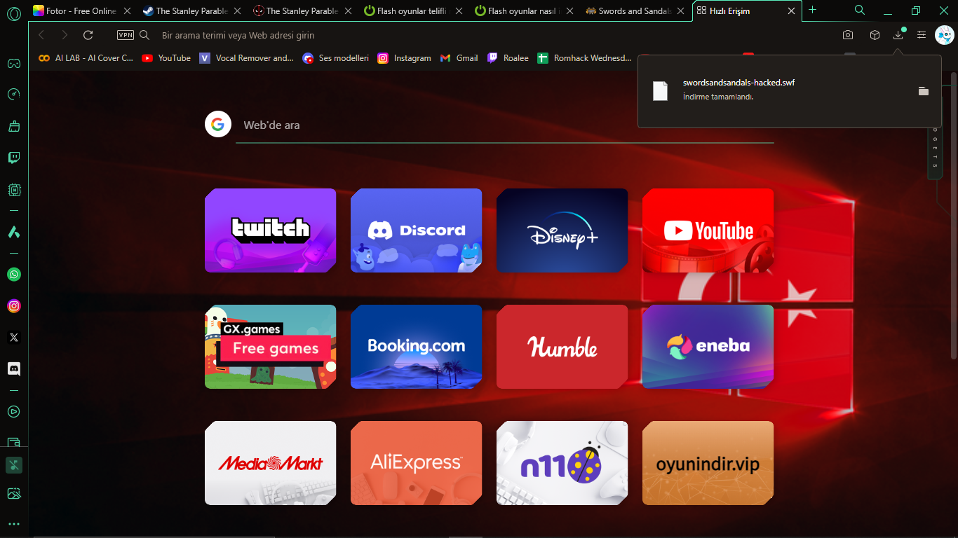 Sonra oraya .swf yaz. Birkaç tane sonuç çıkacak, orada linkler olacak. O linke tıkla, indir. Tıklayamıyorsan kopyala yapıştır arama çubuğuna.