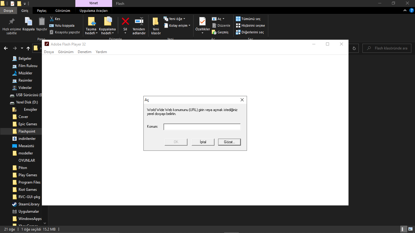Oyunun swf dosyasını indirmiş olacaksın. Oyunu oynamak için flash oynatıcı lazım olduğu için buradan indirebilirsin. Sonra Flash oynatıcıda sol üstten Dosya>Aç'a tıklayıp dosyanı seç