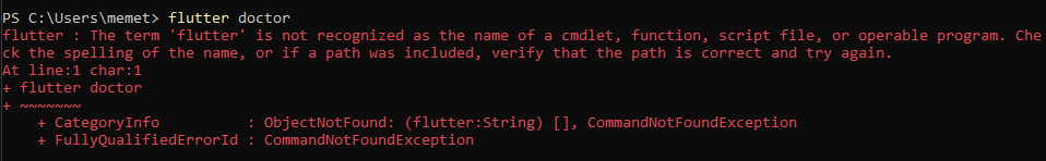 Daha sonra PowerShell'i çalıştır ve orada flutter doctor komutu ile gereksinimleri kontrol et.