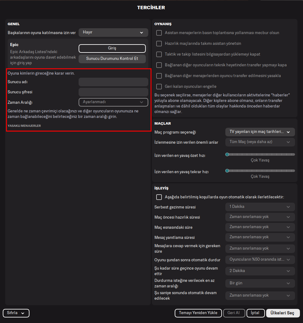 Kırmızı işaretli yerde sunucu şifresi koyabiliyorsunuz hocam. Önceden giren oyuncu için de oyun durumu kısmında oyuncuların profiline geçip emekli edebilirsiniz.