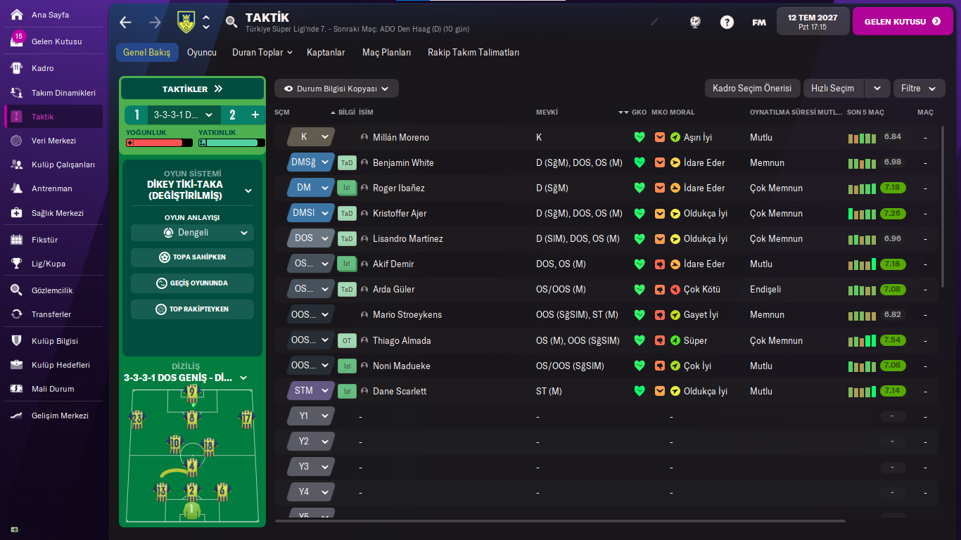 FM22 taktik ekranı bozuldu gördüğünüz gibi ne maç ağırlığı ya da taktik için yıldızı gözüküyor. Soldaki çubuktan kadro seçeneğine tıkladığınızdaki ekran gibi gözüküyor bunu nasıl düzeltirim? İstediğim gibi oyuncu seçemiyorum bunun yüzünden(Epic'ten oynuyorum)