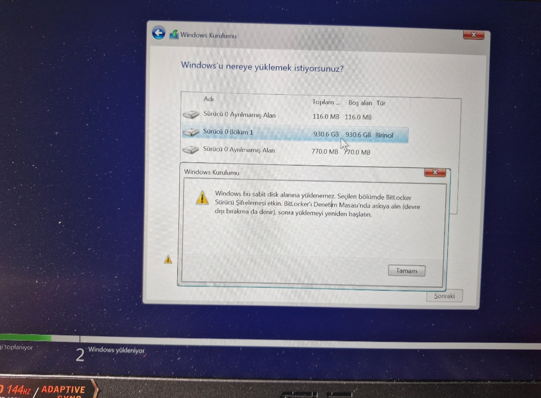 Format atıyordum böyle bir şey çıktı karşıma. Denetim masasını açamam çünkü formatı kapatsam bile direkt USB boot açılıyor.