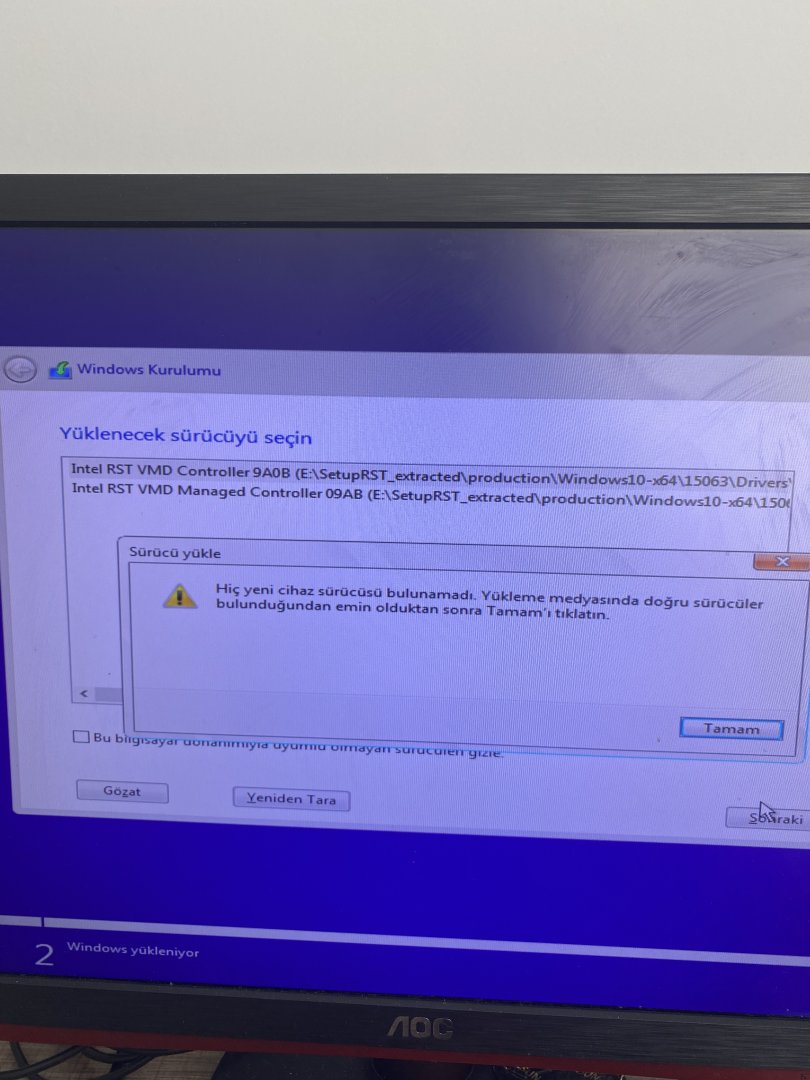 Bugün bilgisayarıma format atmaya karar verdim sıfırdan bir format diski oluşturdum Rufus'la. Kuruluma geçtigimde diskler görünmüyor. Biraz araştırma yaptığımda sorunun VMD kaynaklı oldugunu ögrendim onunda dosyalarını bulup indirdim fakat kurulumda dosyaları kabul etmiyor ve yine diskler görünmüyor.