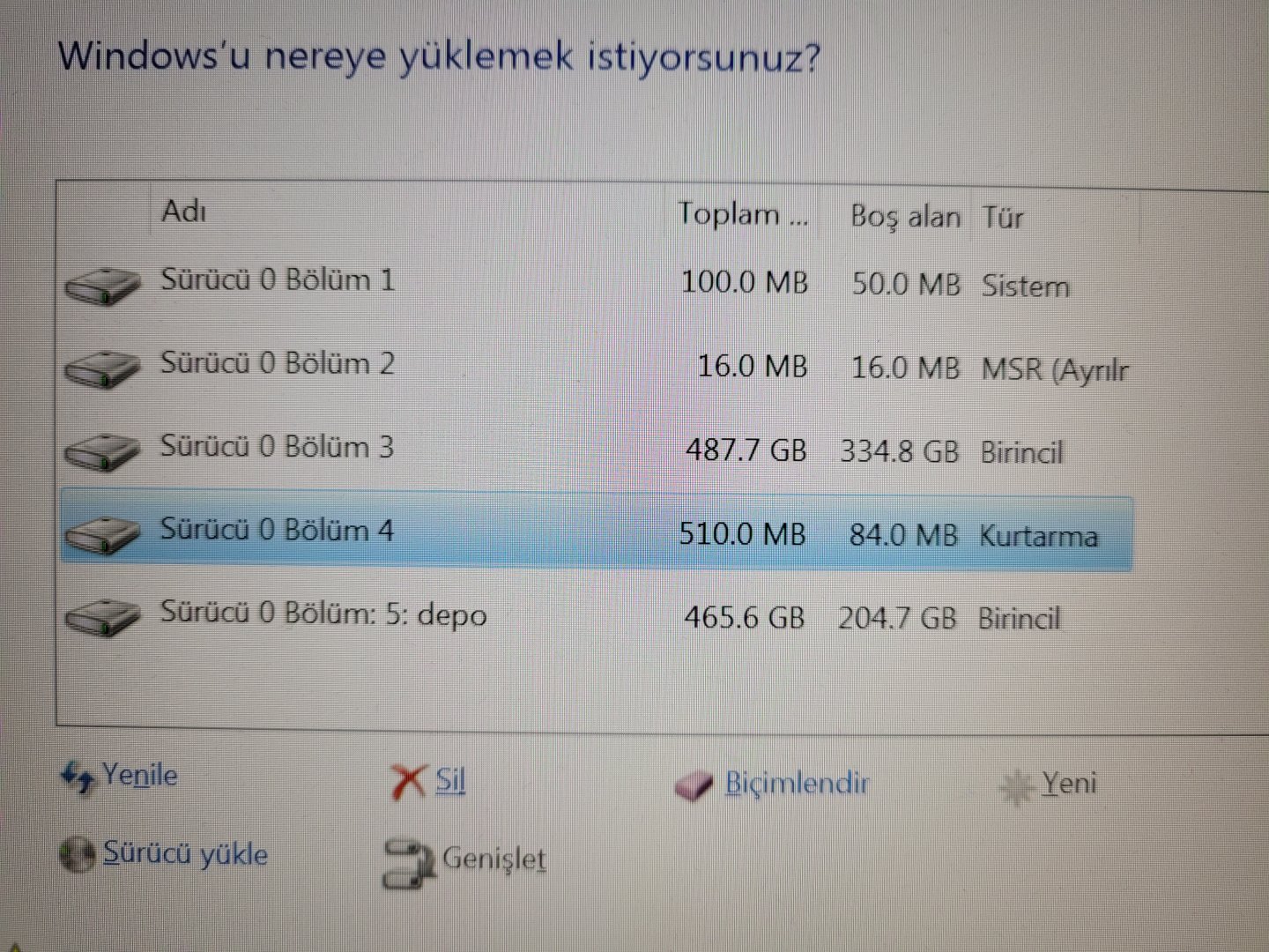 Format atarken bu bölümlerin hepsini silmeli miyim? Sildiğim zaman sorun yaşatır mı?