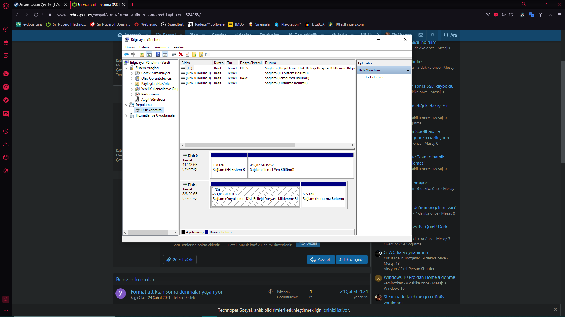 Arkadaşlar bilgisayara format attım ama normalde 2 tane SSD'im varken şu an sadece bir tanesi gözüküyor. Bunu nasıl düzeltebilirim?