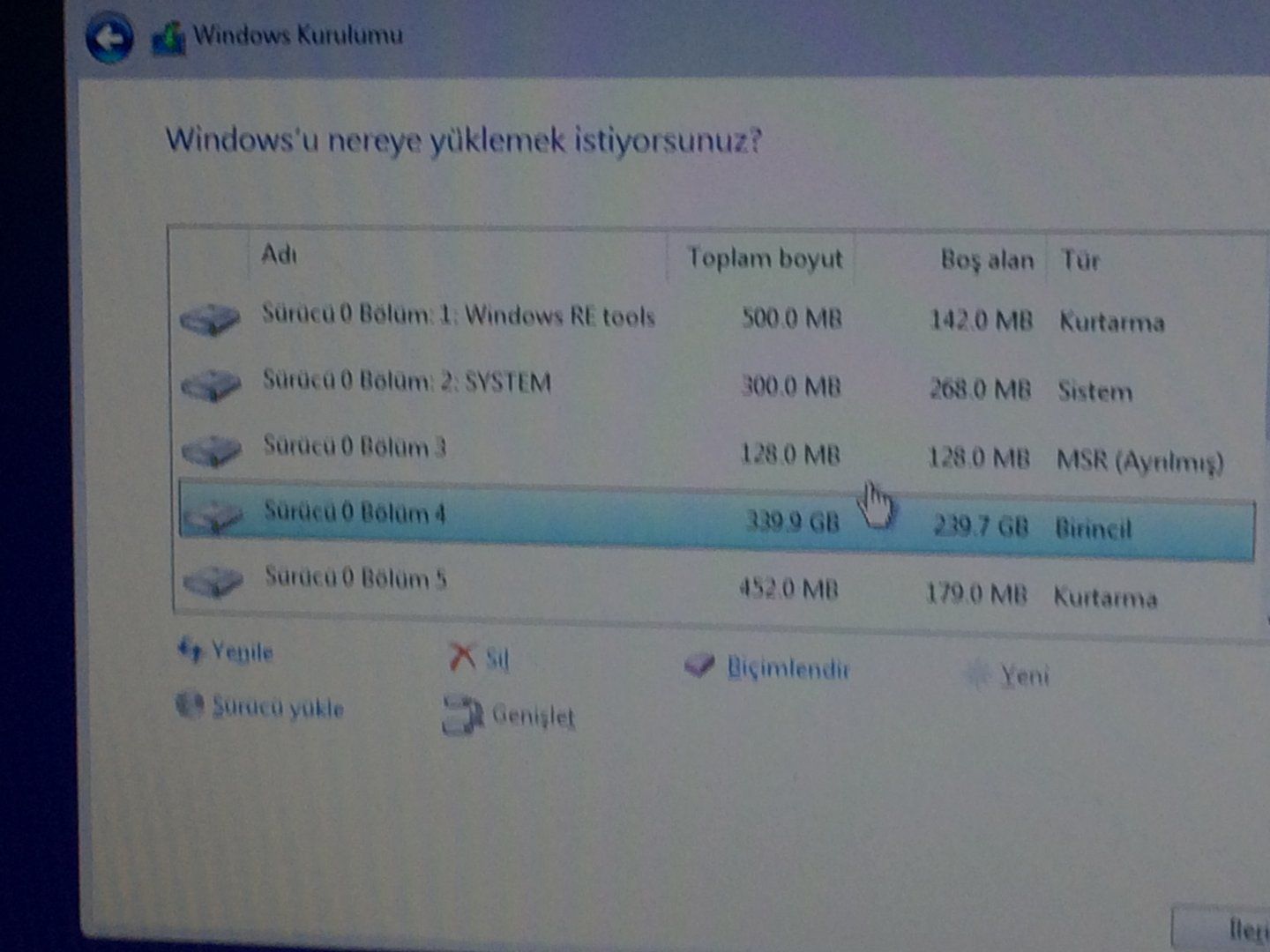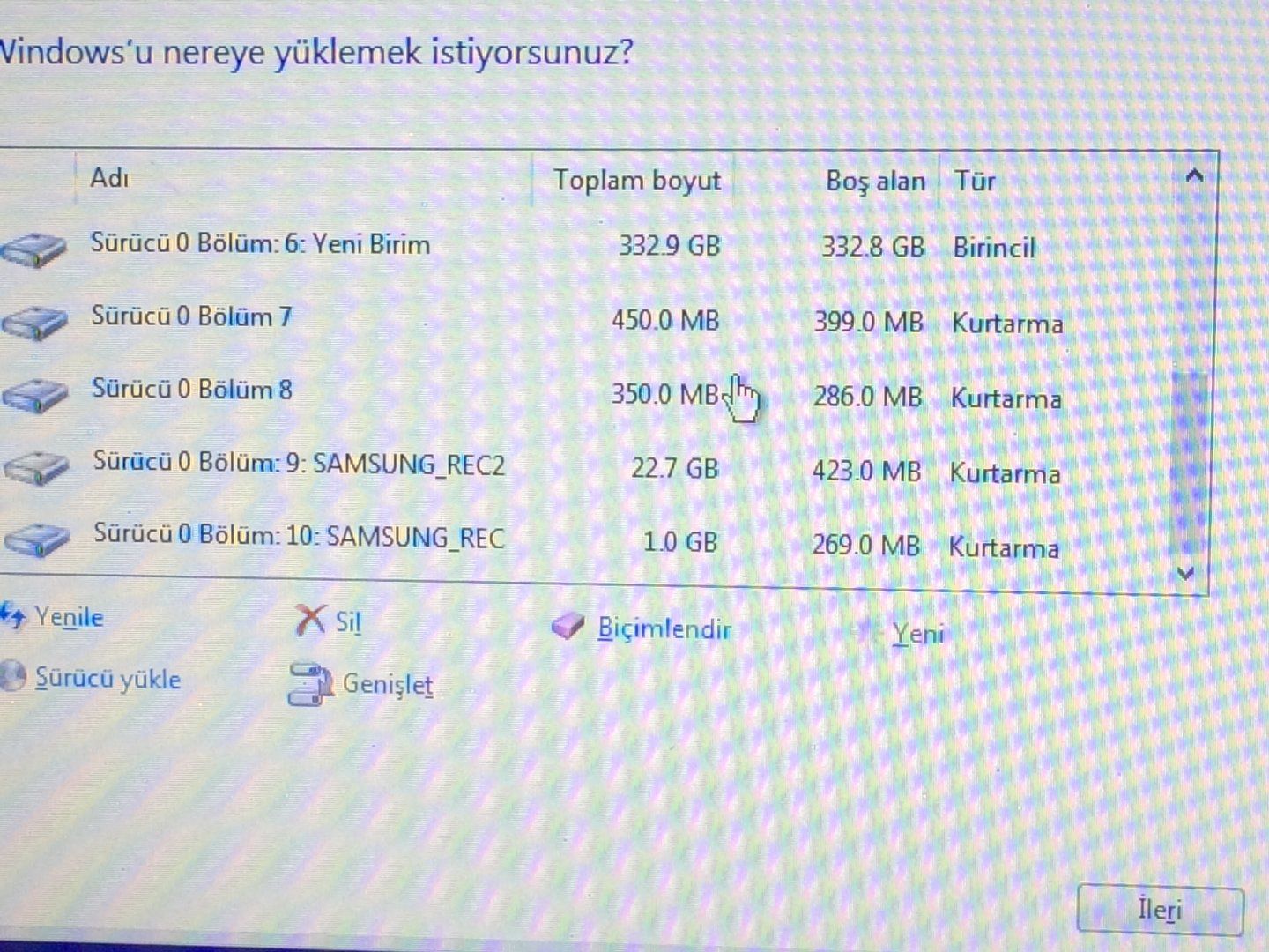 Temiz kurulum yapmak istiyorum. Bunlardan hangilerini sileceğim? Ayrıca 750GB HDD var ve ikiye bölmek istiyorum.