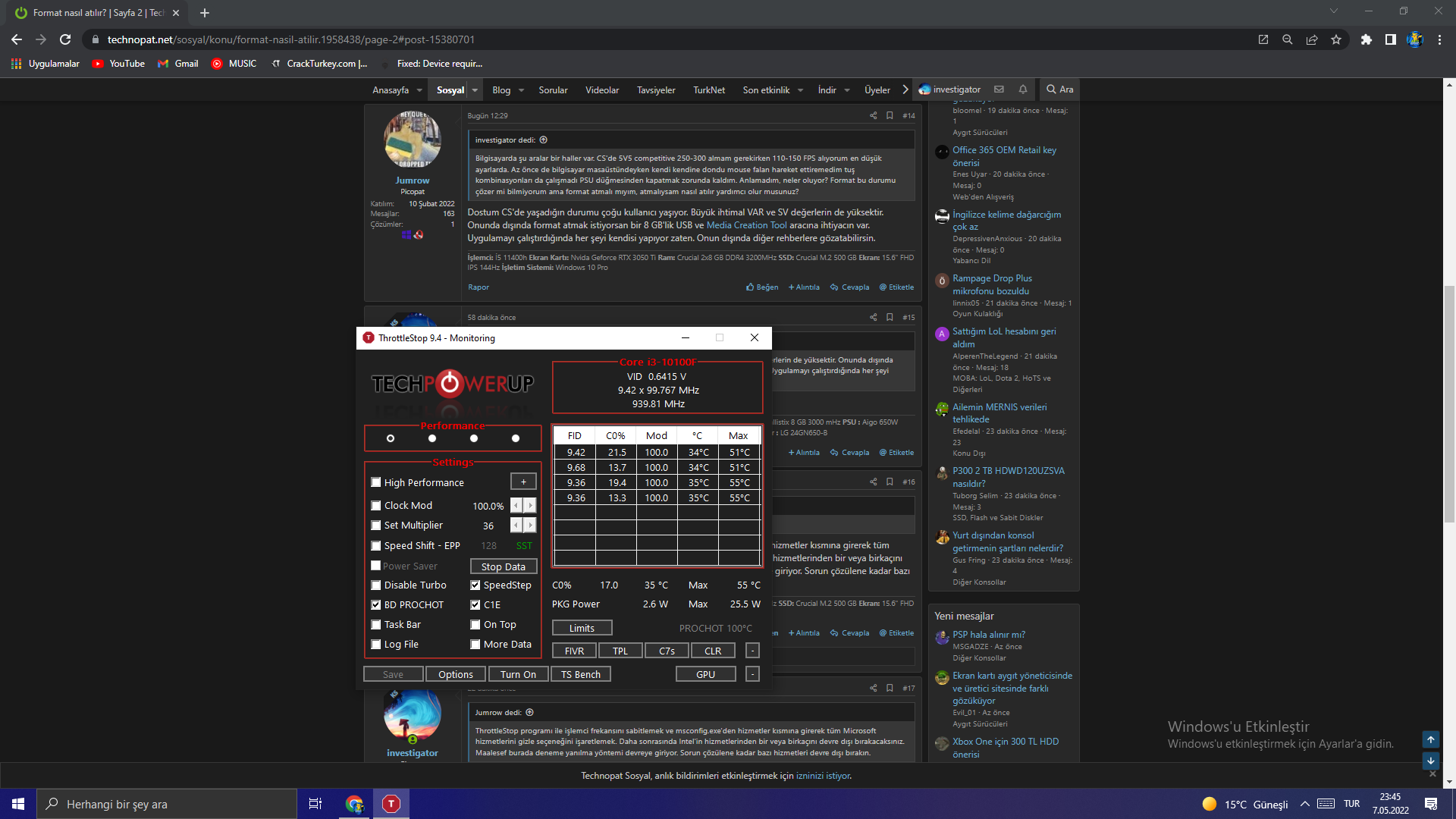 Bilgisayarda şu aralar bir haller var. CS'de 5V5 competitive 250-300 almam gerekirken 110-150 FPS alıyorum en düşük ayarlarda. Az önce de bilgisayar masaüstündeyken kendi kendine dondu mouse falan hareket ettiremedim tuş kombinasyonları da çalışmadı PSU düğmesinden kapatmak zorunda kaldım. Anlamadım, neler oluyor? Format bu durumu çözer mi bilmiyorum ama format atmalı mıyım, atmalıysam nasıl atılır yardımcı olur musunuz?