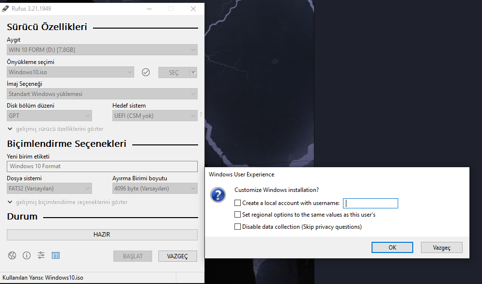 PC de format atmak ıstıyorum ve rusuftan yaparken pencere açıldı +benım flash bellek 7.26 GB rusuftan yapma falan dıyorlar. Yardımcı olur musunuz?