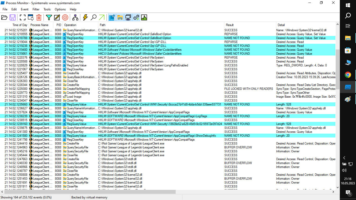Not: 10'dan fazla kez yeniden yüklendi, bilgisayar formatlandı ve denendi. DirectX güncel, bütün yeniden dağıtılabilirler yüklü ve güncel, Framework güncel, 8 GB RAM 240 GB SSD ve Intel Pentium P6100 işlemcim var. Process Monitor ekran görüntülerini bırakıyorum:
