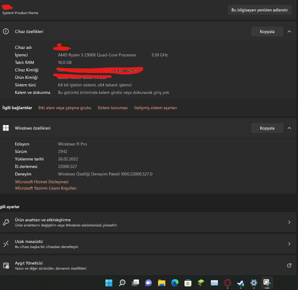 ve Aygıt yöneticisi'ne girip ekran görüntüsü de atar mısınız?