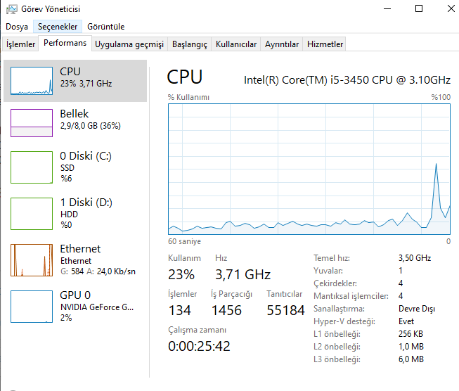 Kendi kendine geçer ilk kurulduğunda disk 100 olur işlemciye yük biner Windows kendini hala yüklüyor olur 2 3 gune bir şey kalmaz.