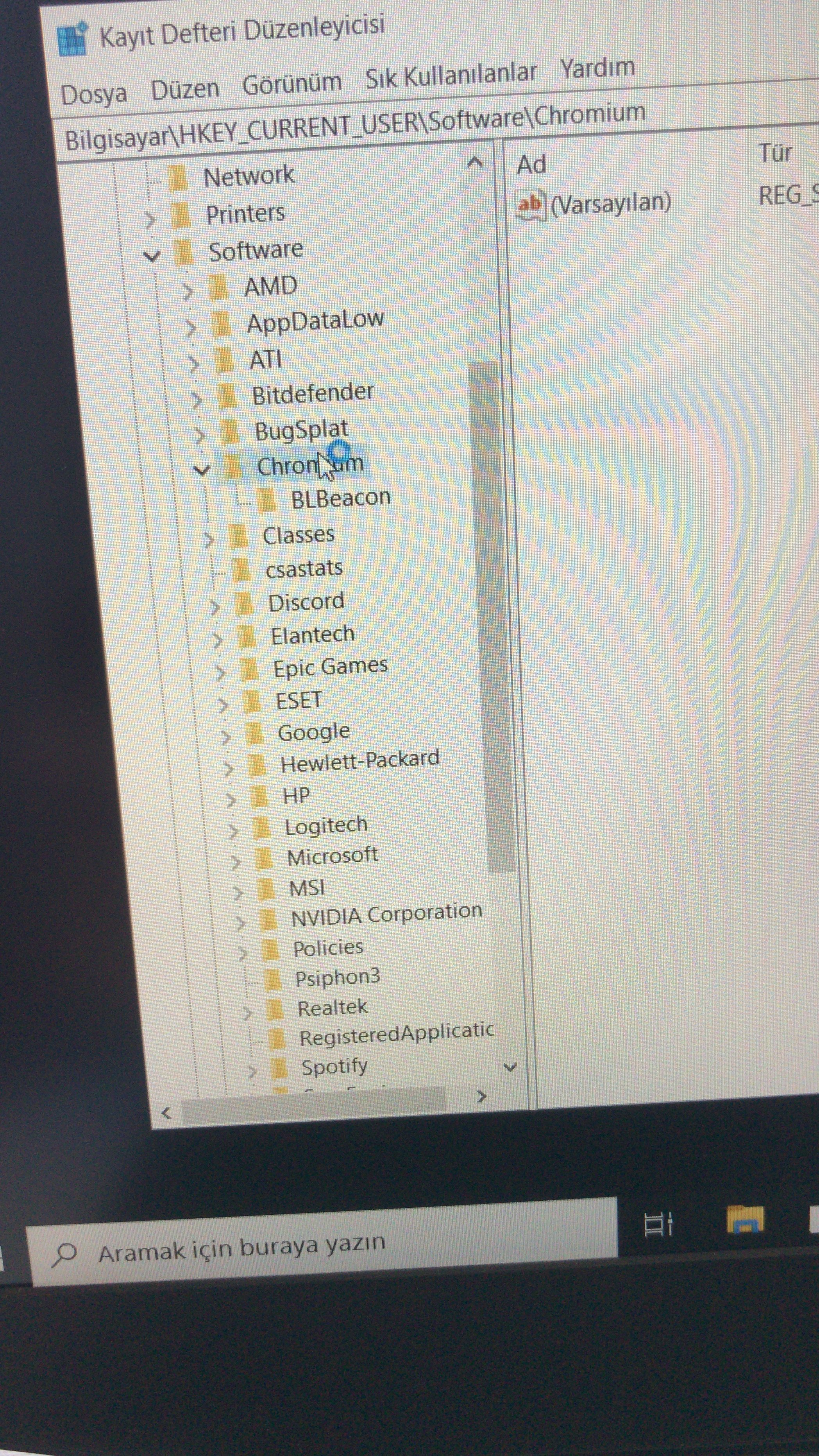 Kayıt defterine girin current user tıklayın software’e basın ve görüceksiniz Chromium’u bu virüs gezginler gibi sitelerden herhangi bir program indirdiğinizde bulaşıyor ve silinmiyor bu internetinizi kullanıyor ve sizi takip ediyor tehlikeli bir virüs bundan kurtulmanın tek yolu format atmak tüm antivirüs programlarını denedim silmiyor silebilen varsa buyursun yol göstersin ben format atmayı düşünüyorum sizin görüşleriniz nedir?