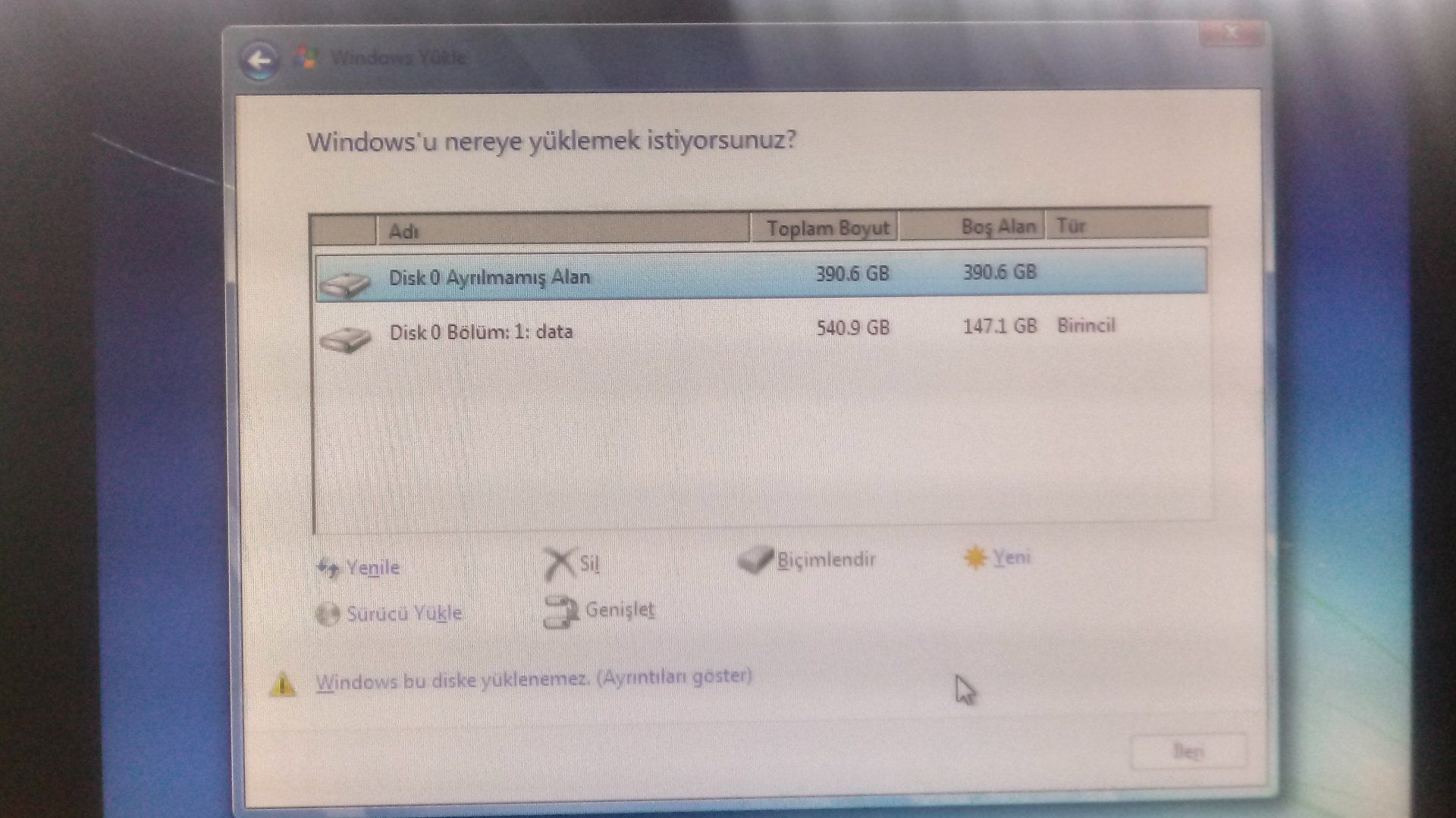 Windows 10 olan bilgisayarımın harddiskinin C bölümünü sıfırlayıp harddiski başka bir bilgisayara taktım. Ayrılmamış alana tıklayıp yeni dediğim zaman hiçbir şey olmuyor. Bölüm 1'in içindeki veriler çok önemli. Windows'u, onları silmeden disk 0'a nasıl kurabilirim?