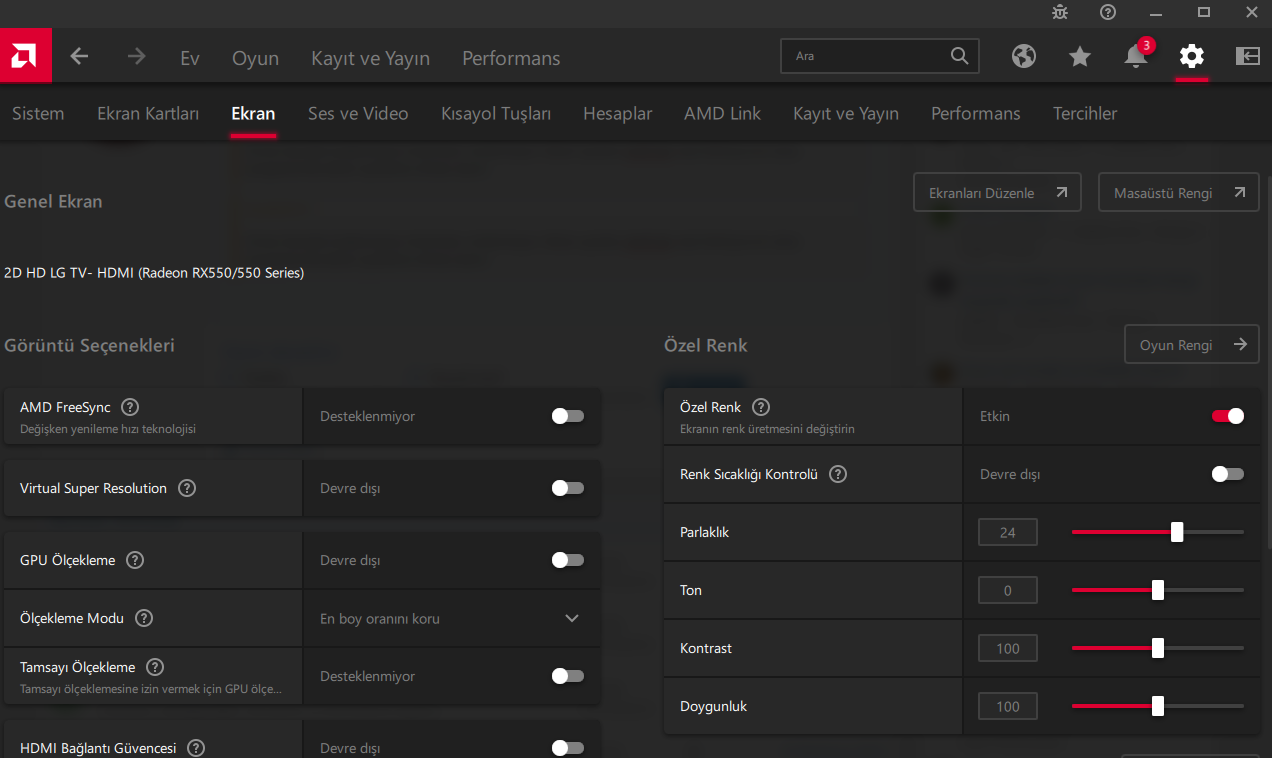 Driver Booster kullanmanızı önermem. Kullanmayın. Ekran ayarları AMD'de nasıl bilmiyorum ama programında ekran ayarlama olması lazım.
