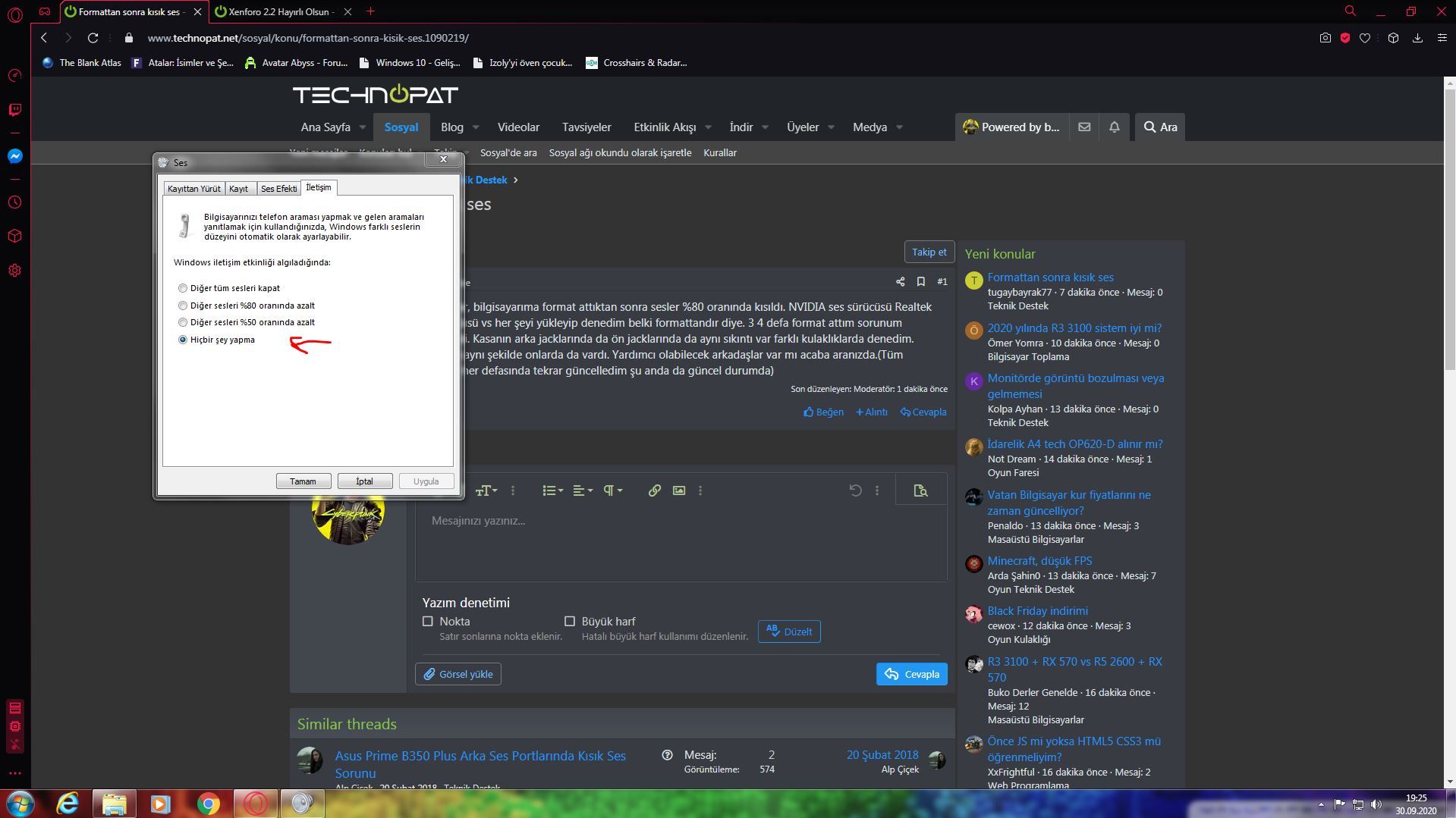 Arkadaşlar, bilgisayarıma format attıktan sonra sesler %80 oranında kısıldı. NVIDIA ses sürücüsü Realtek ses sürücüsü vs her şeyi yükleyip denedim belki formattandır diye. 3 4 defa format attım sorunum düzelmedi. Kasanın arka jacklarında da ön jacklarında da aynı sıkıntı var farklı kulaklıklarda denedim. Sorunum aynı şekilde onlarda da vardı. Yardımcı olabilecek arkadaşlar var mı acaba aranızda.(Tüm driverları her defasında tekrar güncelledim şu anda da güncel durumda) Gönüllü olarak yapmak isteyene team wiever verebilirim =)
