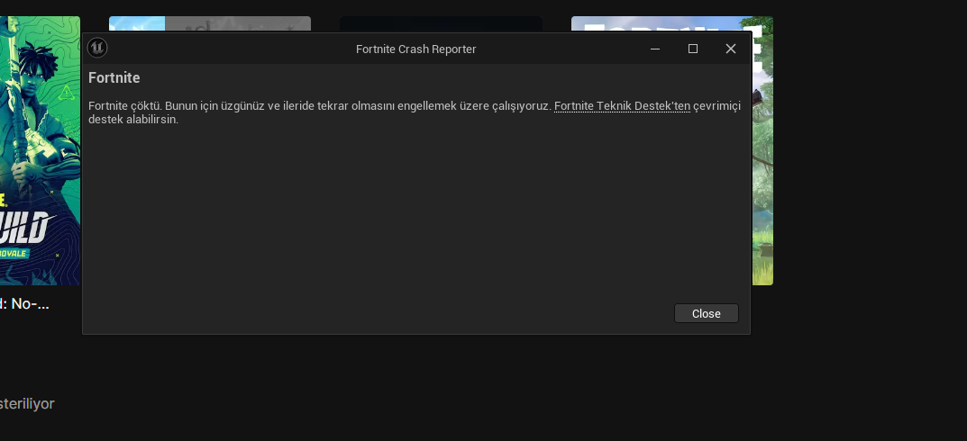 Fortnite girmeye çalışırken böyle bir hata veriyor. İnternette çeşitli çözümlerin hepsini denedim ama sonuç aynıydı. Bilen biri varsa yardımcı olursa sevinirim.
