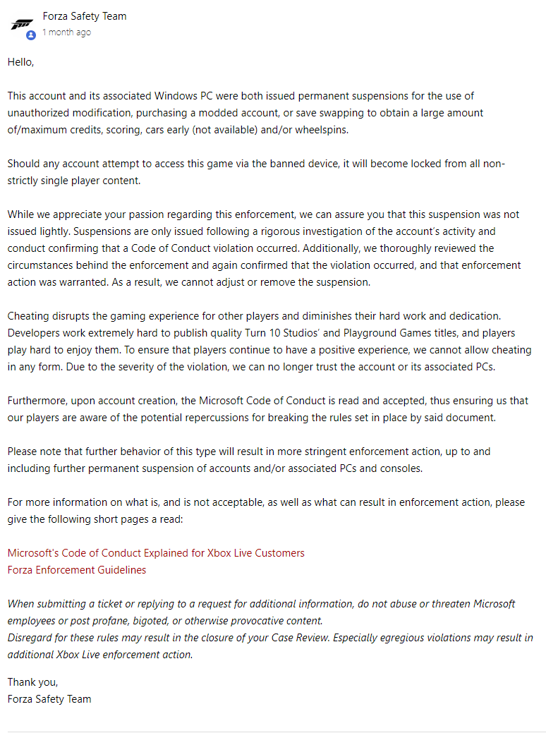Düzenleme: Bu alttaki banı tam anlayabilmiş değilim ama onun cihaz banı olduğunu düşünüyorum. Ayrıca Forzaya sorunsuz şekilde girebiliyorum sadece online giremiyorum geri kalanlar açık