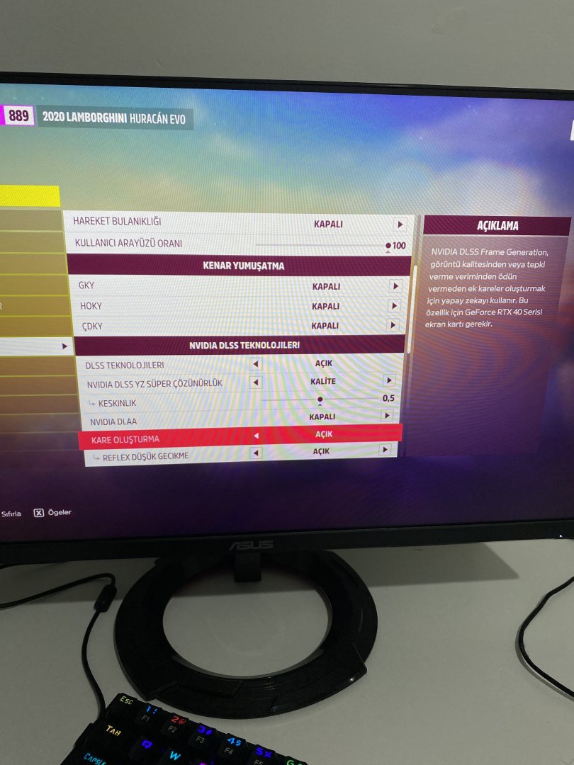 Forza Horizon 5 oyununda 3060 12 GB ekran kartı modelinde DLSS Frame Generation açabiliyorum, mod falan kurmadım. 4060'dan itibaren desteklemiyor muydu bu DLSS Frame Generation? Ben nasıl aktif edebiliyorum?