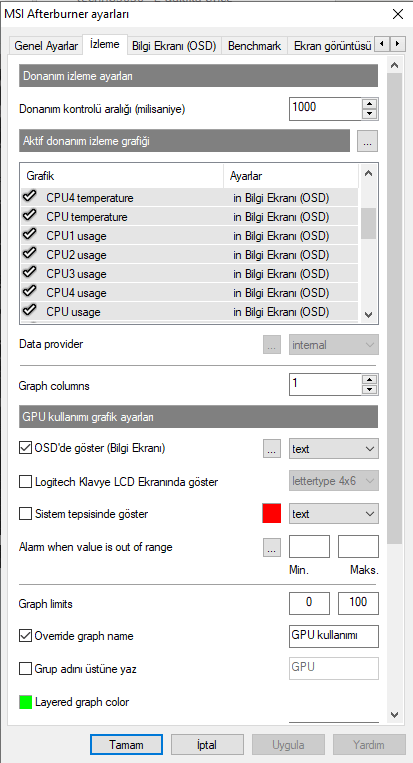 GPU 1 sıcaklığını etkinleştirmen lazım. Ders bitince etkinleştirip oyuna girip değerleri paylaşırsın.