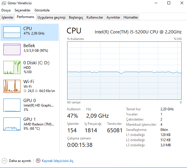 Şimdi GPU ve CPU yu LoL'ü açıp test edip yazacağım.