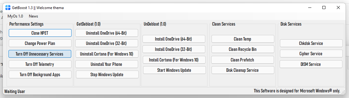 FPS arttırma ve Windows Debloat etme aracı, GetBoost v1.3!