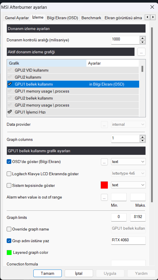 Afterburner bu işin için standarttır. RivaTuner ile birlikte çalıştırın. Açıp kapama tuş atamalarını yapın. Görmek istediğiniz değerlerin tiklerini açın. Tikleri açtığınız değerlerde "OSD'de göster" yazmalı. Bunları yaparsanız sorun çözülecektir.MSI Afterburner kurdum fakat ne kadar denesem de işe yaramadi, baska önerebileceğiniz FPS gösterme programı var mı?