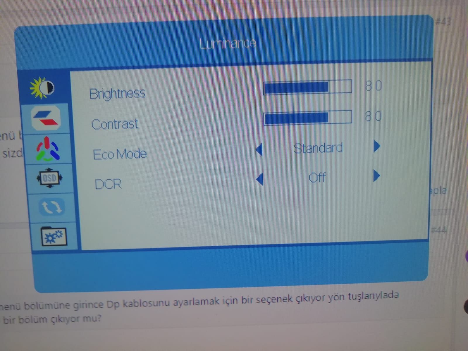 Benim monitörümde menü bölümüne girince Dp kablosunu ayarlamak için bir seçenek çıkıyor yön tuşlarıylada ayarlıyorum sizde öyle bir bölüm çıkıyor mu?Attım efendim.