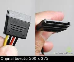 Direk PSU'dan çıkan bir kablo bulacaksınız, anakarttan çıkmıyor. Şu şekilde çıkışı olan bir kablo bulmanız lazım. Sonra da SSD'nin altındaki güç girişine takın.