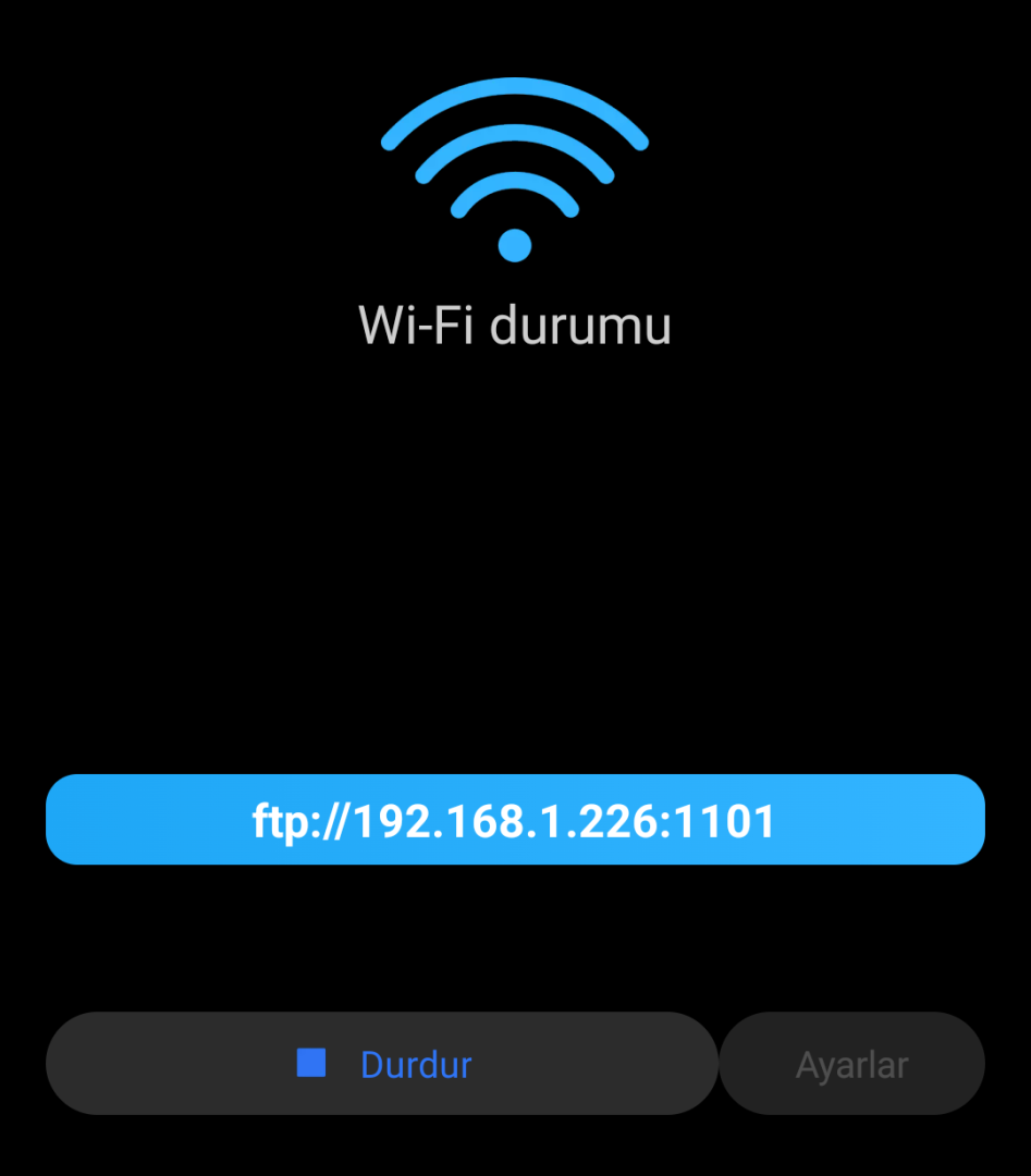 Telefonda bu ekran açık kaldığı sürece FTP sunucunuz açık kalmış oluyor.