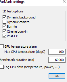 Bunları seçtikten sonra "GPU Stress Test" butonu yerine altındaki benchmark'lardan birisne tıklıyor olabilir misin?