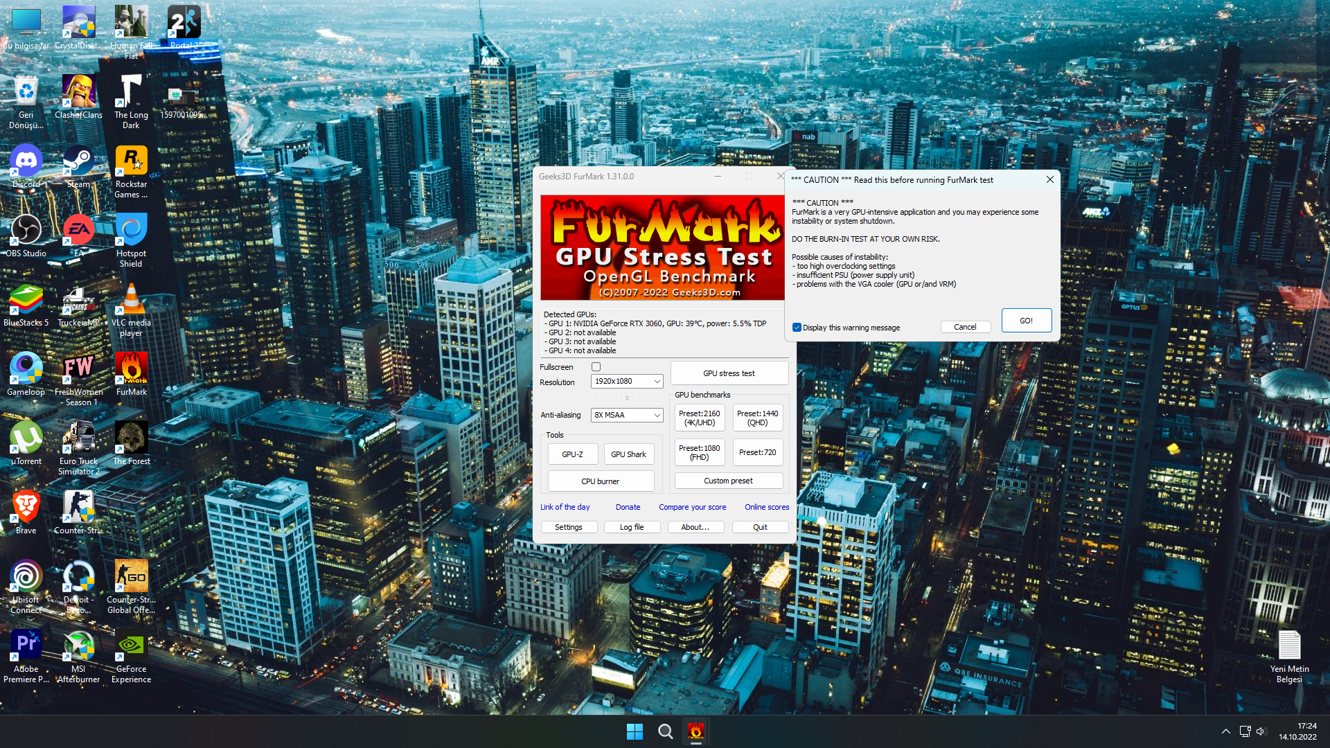 FurMark indirdim CPU ve GPU stress testi yapmak istiyorum uyarı verdi bu şekilde devam edeyim mi?