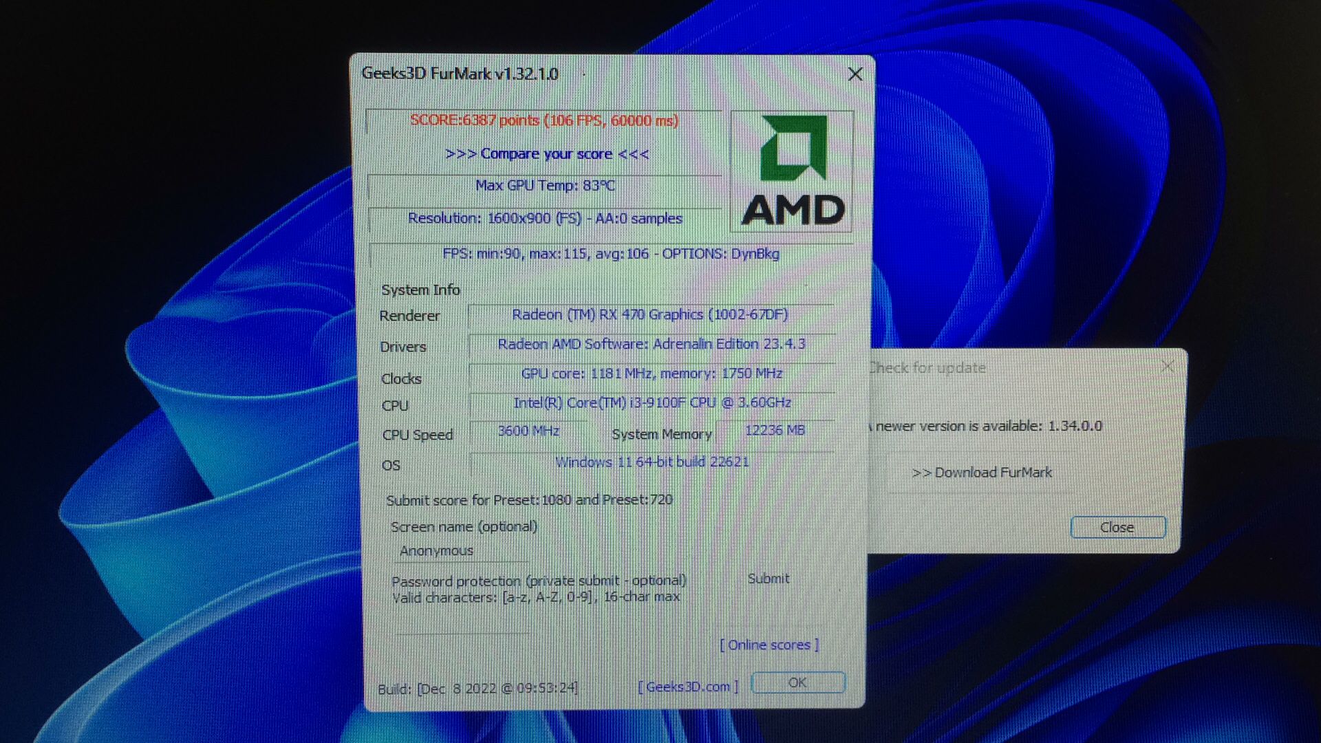FurMark'ta RX470 83 derece normal mi?