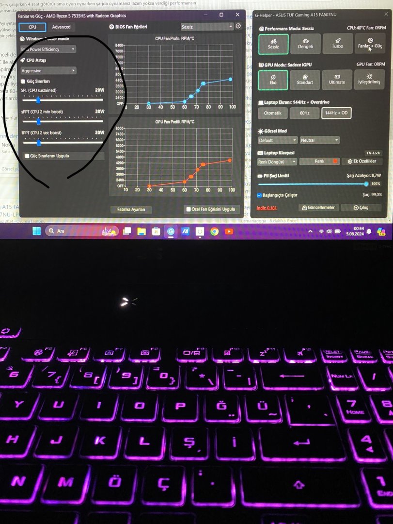 Kullanmış olduğum 7535HS işlemci ve RTX 4050 ekran kartlı 2023 model ASUS TUF Gaming A15 dahil olmak üzere ASUS serisine ait olan bir oyuncu laptopu satın aldınız ve yük altında iken veya oyun sırasında işlemcinizin sabit bir şekilde 93 derece sıcaklığa sahip oluyor olması sizi rahatsız ediyor ise iki dakika içerisinde cihazınızı en fazla 80 dereceye sabitliyor olarak kullanabilirsiniz. Bu yöntem ASUS cihaza sahip olan laptopların genel olarak tamamını kapsıyor. Cihazınızın A14 olması veya işlemcisinin 7535HS'ten daha az veya yüksek olması rehber içeriğinde bir fark yaratmıyor.
