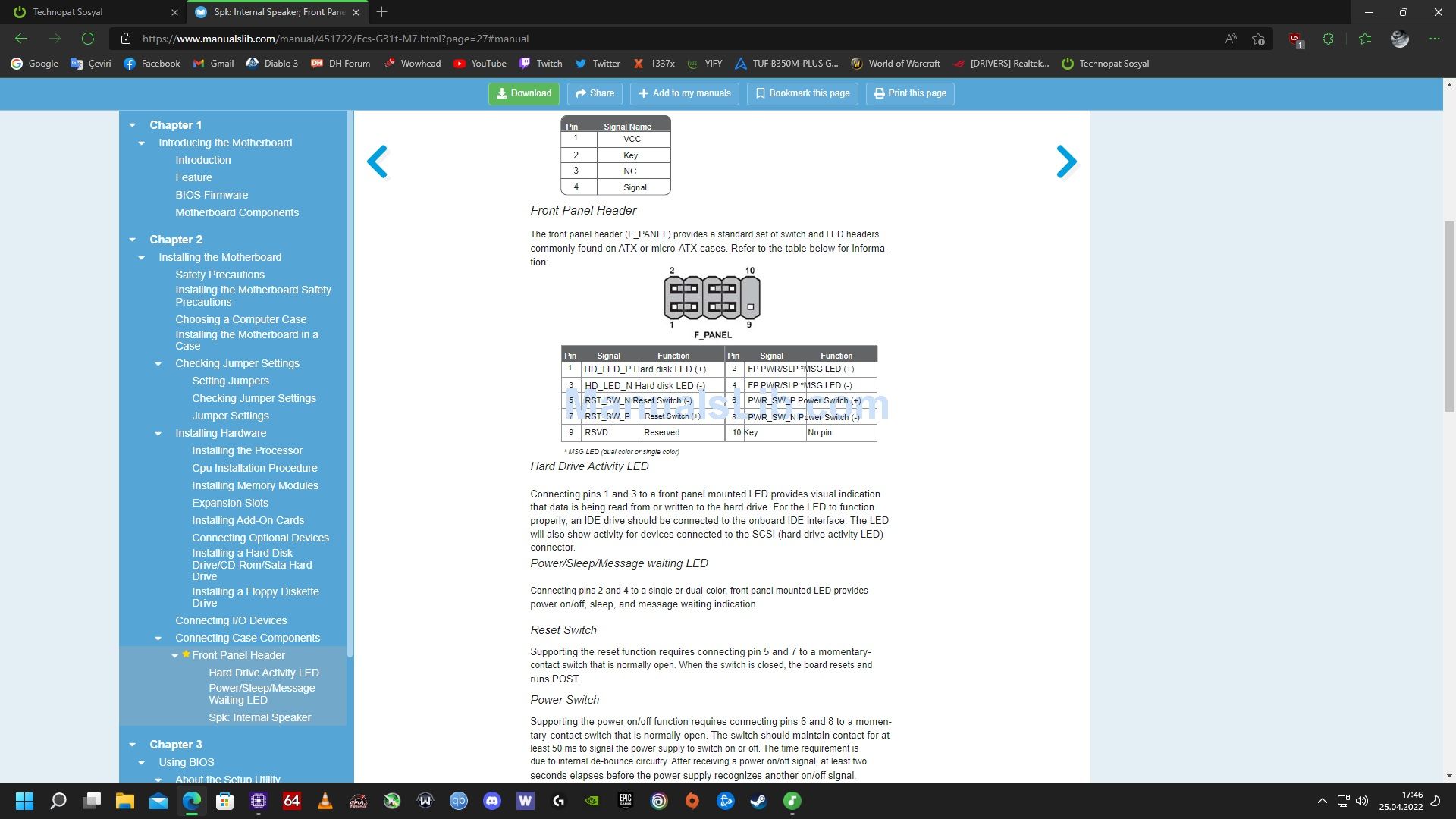 Selam arkadaşlar, eski bilgisayardan kalma anakart var, mavi ekran vermişti bir ara bende kenara kaldırmıştım. Bugün bir format atmak istiyordum, kablo bağlantılarını yapamadım, internetten kılavuzunu buldum kartın ancak neyi nereye takacağımı tam anlamadım, özellikle Power Switch bağlantılarını. Detaylı şekilde yardımcı olabilecek var mı?