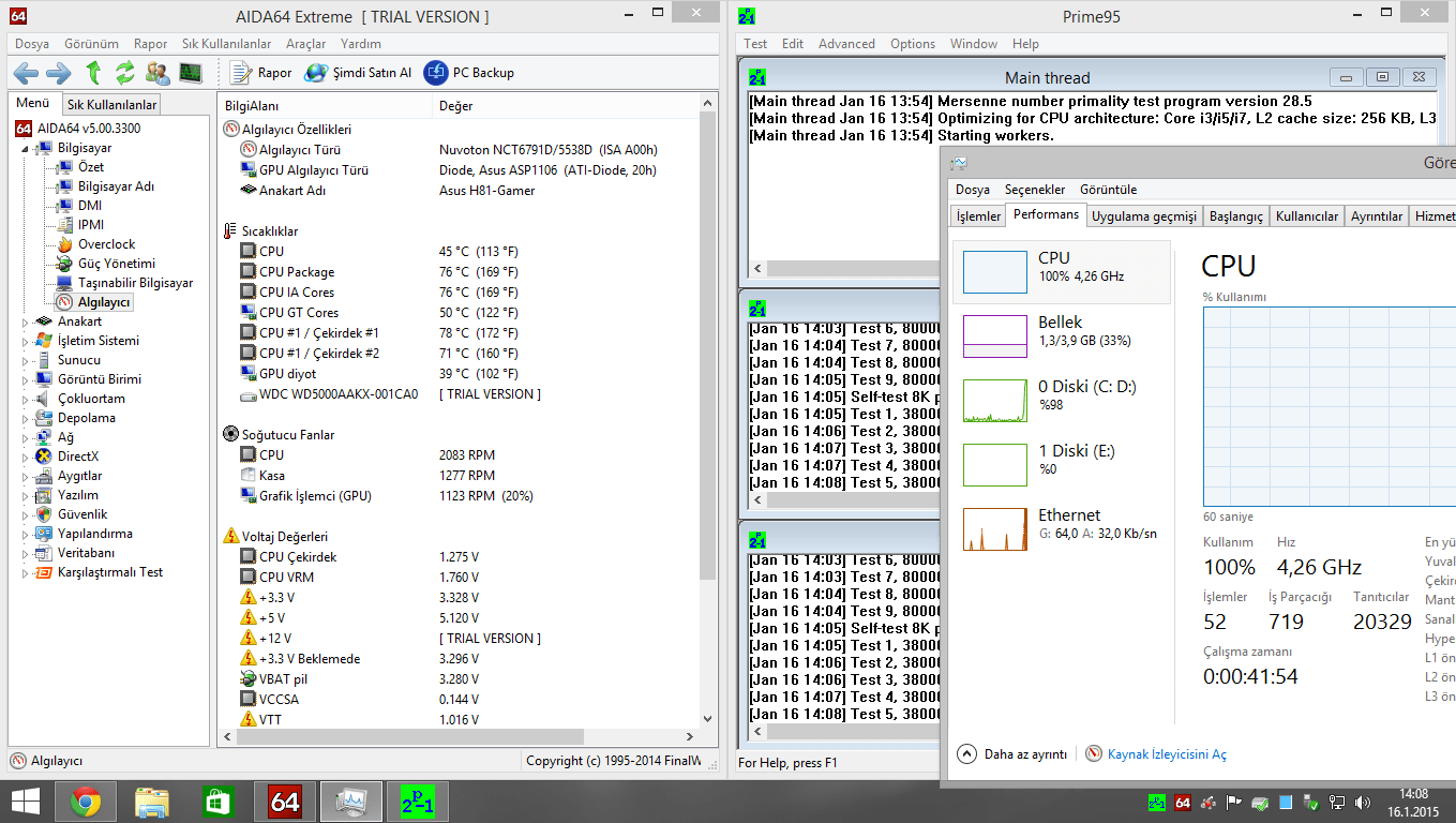 Prime95 ile teste soktuğunda sıcaklıklar yüzünden başın ağrımaya başlar.
