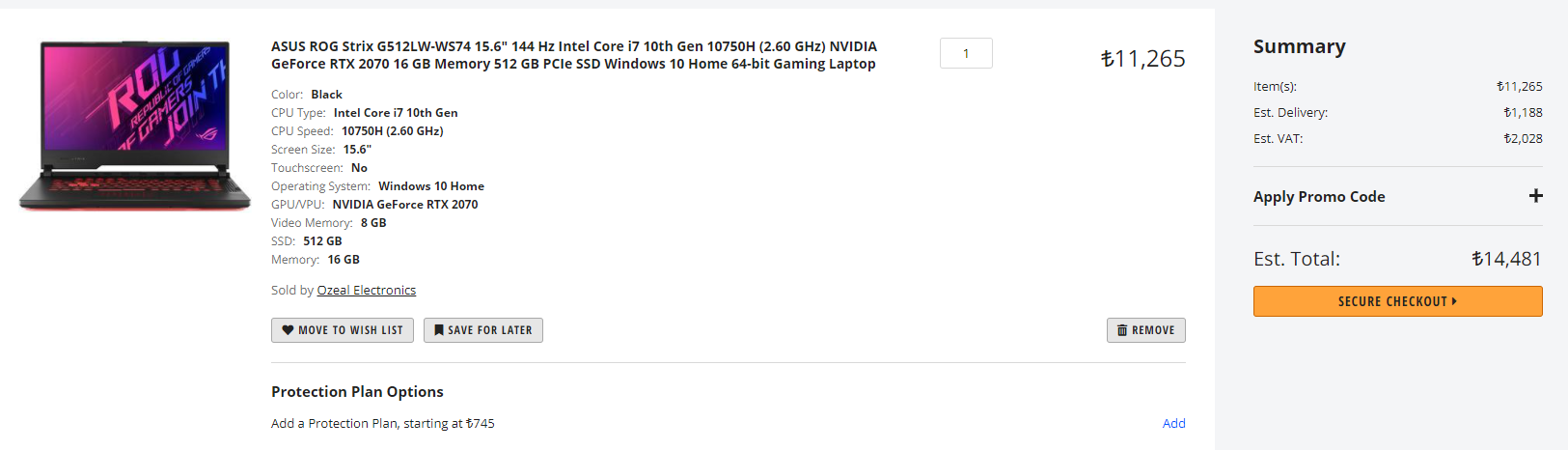 RTX 2070 ekran kartlı ve i7 10750h işlemcili ASUS ROG STRIX G512Lw'nin Türkiye fiyatı 15000 TL ama Newegg'den 13.292 TL alabilirsiniz.