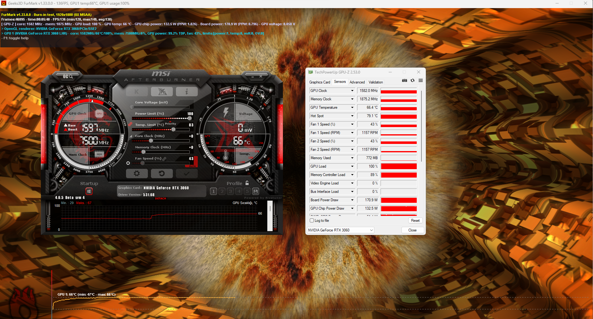 Overclock denemesini MSI afterburner üzerinden gerçekleştirdim. Bir kaç deneme yanılma sonrasında +180 çekirdek ve +900 bellek olacak şekilde stabilliği yakalayabildim. Özellikle TLOU'da 50 FPS'in altına düşmesini engellediği için ultra ayarlarda oyunu daha oynanabilir kıldığını söyleyebilirim. Hiçbir şekilde power limit arttırma yetkimiz olmadığı için OC denenmesini tavsiye ederim. Aynı tüketimde biraz daha yüksek performans kulağa gayet hoş geliyor. Ayrıca power limit arttırılamadığı için ekstra bir furmark testi yapıp sıcaklıkları gözlemlemedim, her ayarda aynı sıcaklıkları verecektir zaten.