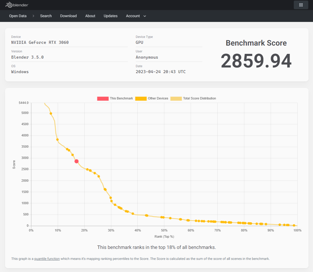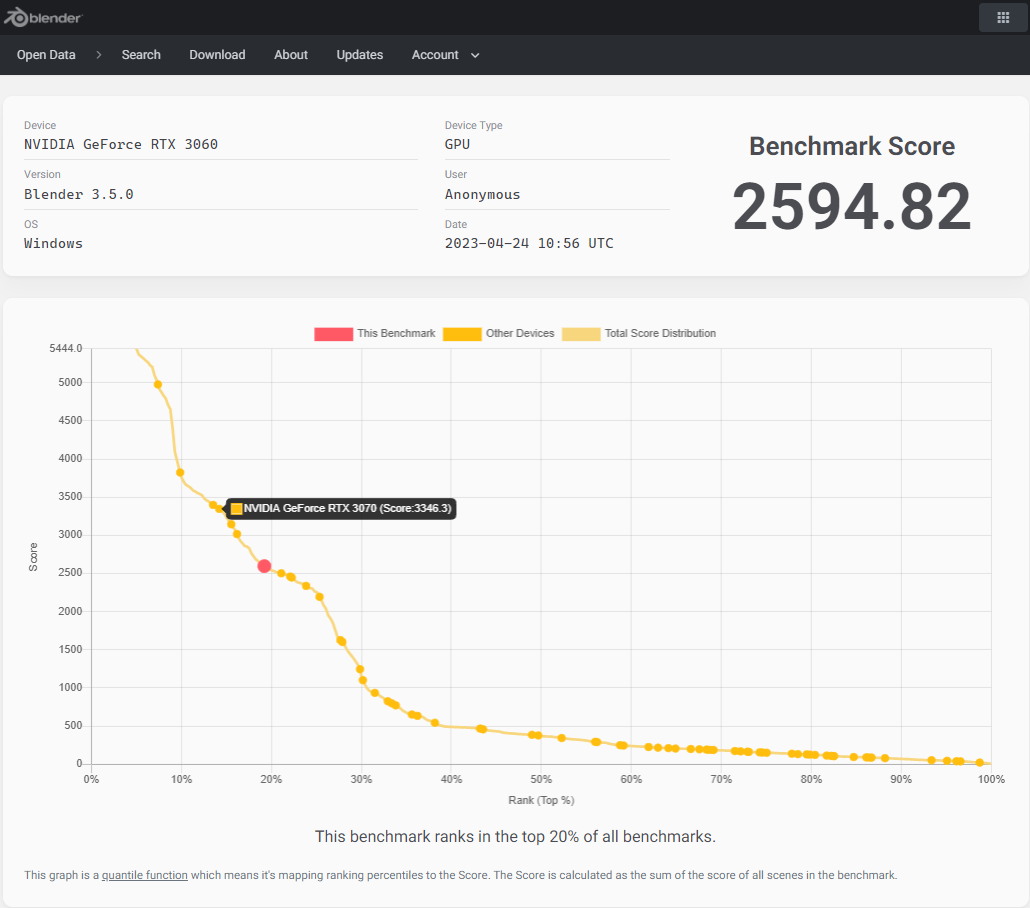 Render testi için Blender 3D uygulamasının benchmark'ını kullandım. 2600 civarı bir puan elde ettik.
