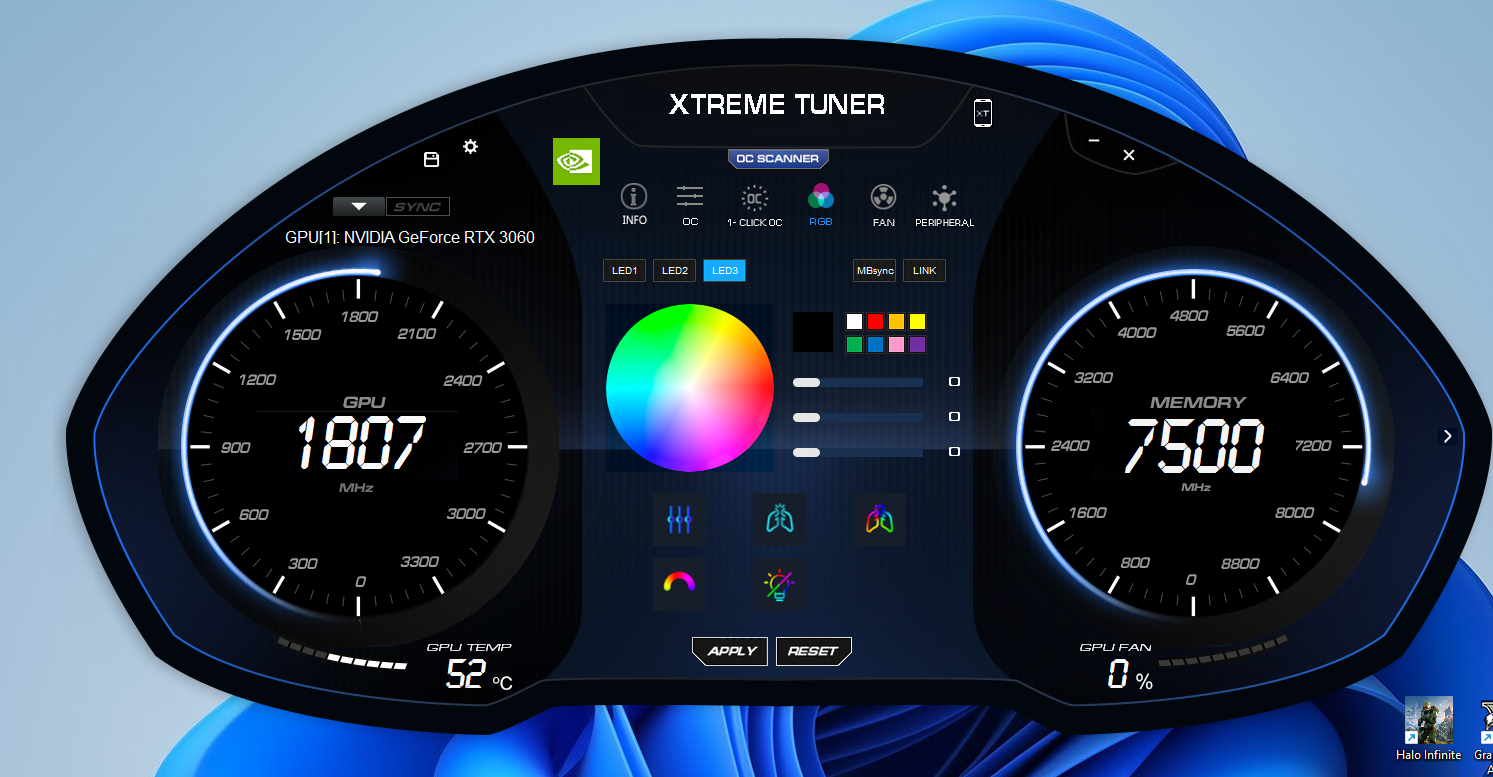 Xtreme tuner Pro adlı yazılım üzerinden kartın RGB'sini, fan hızını, MHZ değerlerini ayarlayabiliyoruz. Ayrıca 1-Click-OC özelliği ile karta OC da yapabiliyoruz. Ancak sadece 35 MHZ arttırdığı için çok etkisi olmuyor, elinizle çok daha fazla arttırabiliyorsunuz. Bunlara ek olarak programdaki QR kodunu telefondaki uygulamasına okutarak telefon üzerinden kartın fan hızını ve RGB'sini ayarlamanız mümkün.