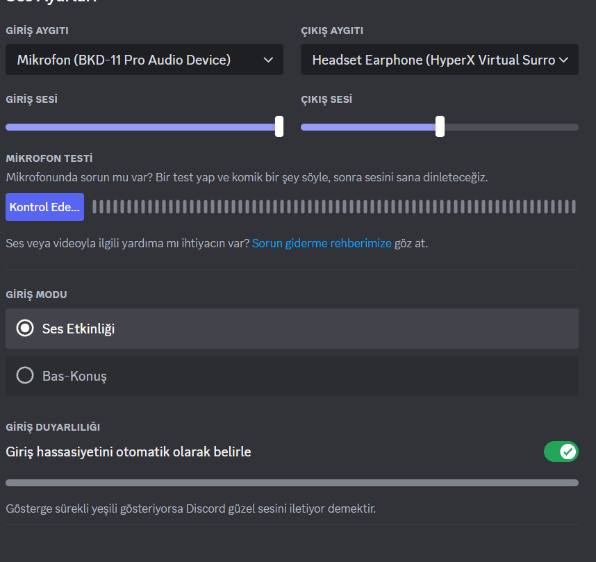 Lskow dedi: Ses ve görüntüden giriş aygıtını kontrol eder misin. Genişletmek için tıkla... Abi sadece discord değil hiç bir yere ses gitmiyor