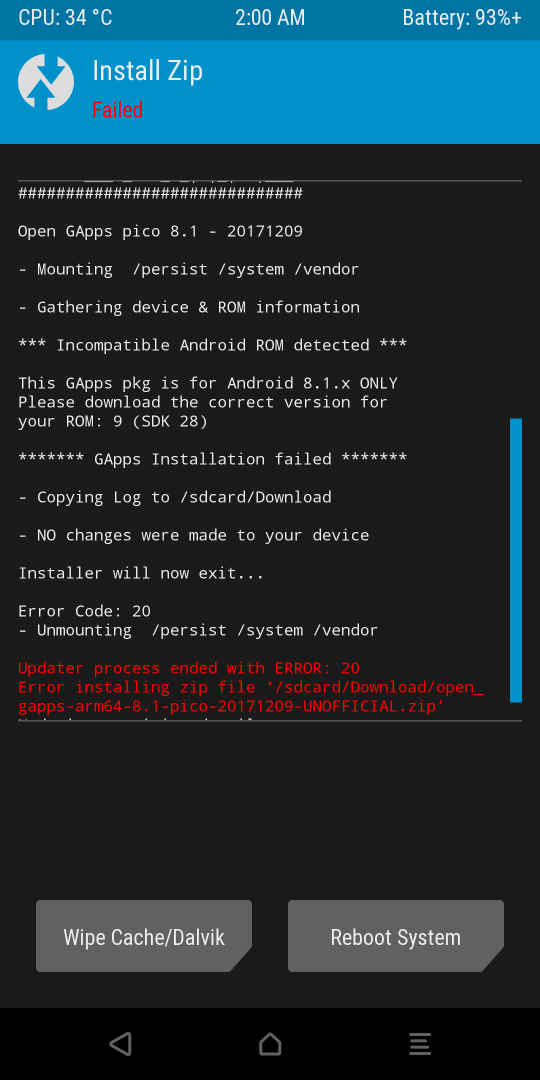 INSTALLATION FAILURE: This GApps package can only be installed on a 8.1.x ROM.