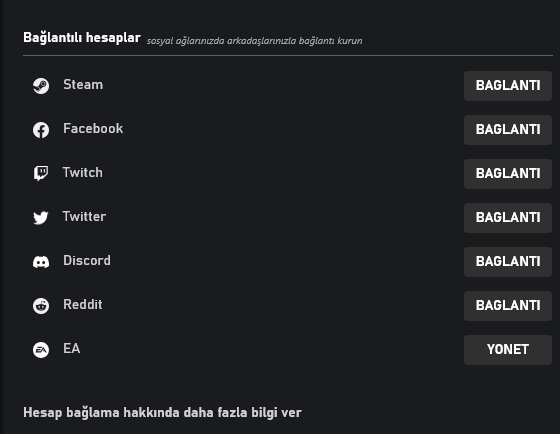 Sol üstte isminize tıklayın. Ayarlar deyin ve orada EA eşleştirin. Sebep o büyük ihtimalle. Sonrasında tekrar deneyin.
